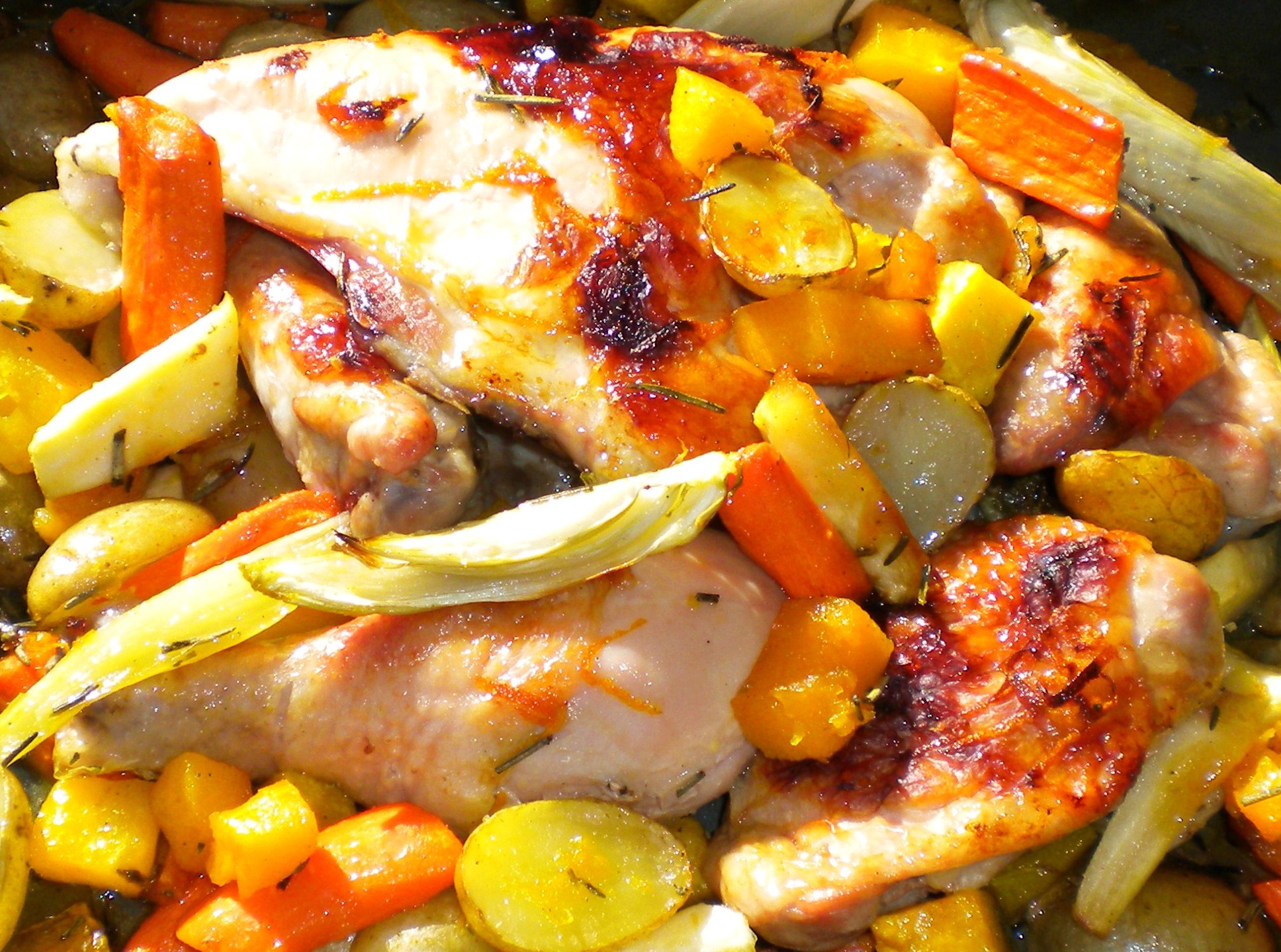 Chicken Roasted with Root Veg, Rosemary & Honey.