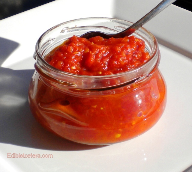 The first recipe is for a wonderful fresh tomato jam that has a hint of Moroccan spiciness due to the combination of cinnamon, honey, garlic, ginger and lemon. The result has a perfectly balanced tangy sweetness and is a brilliant accompaniment to burgers, shrimp, chicken, pork, lamb – or in a sandwich.