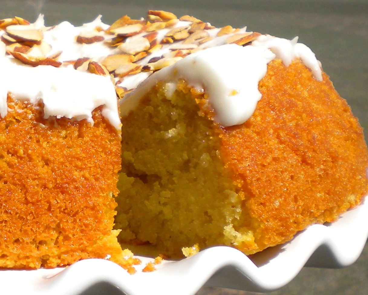 Add the remaining elderflower syrup and whisk until you have a paste. If it’s too thick or too thin, add more syrup or powdered sugar accordingly, until a spreadable consistency. Spread over the top of the cake then decorate with toasted flaked almonds.