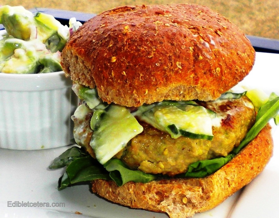Chicken Edemame Burger with an Avocado Cucumber Relish