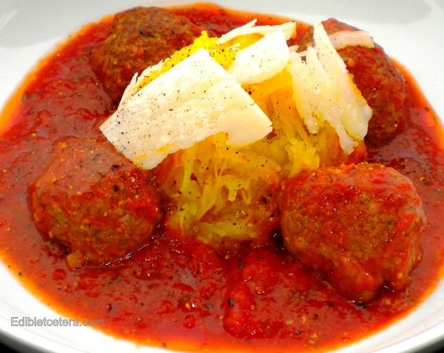 SPAGHETTI SQUASH with PORCINI MEATBALLS