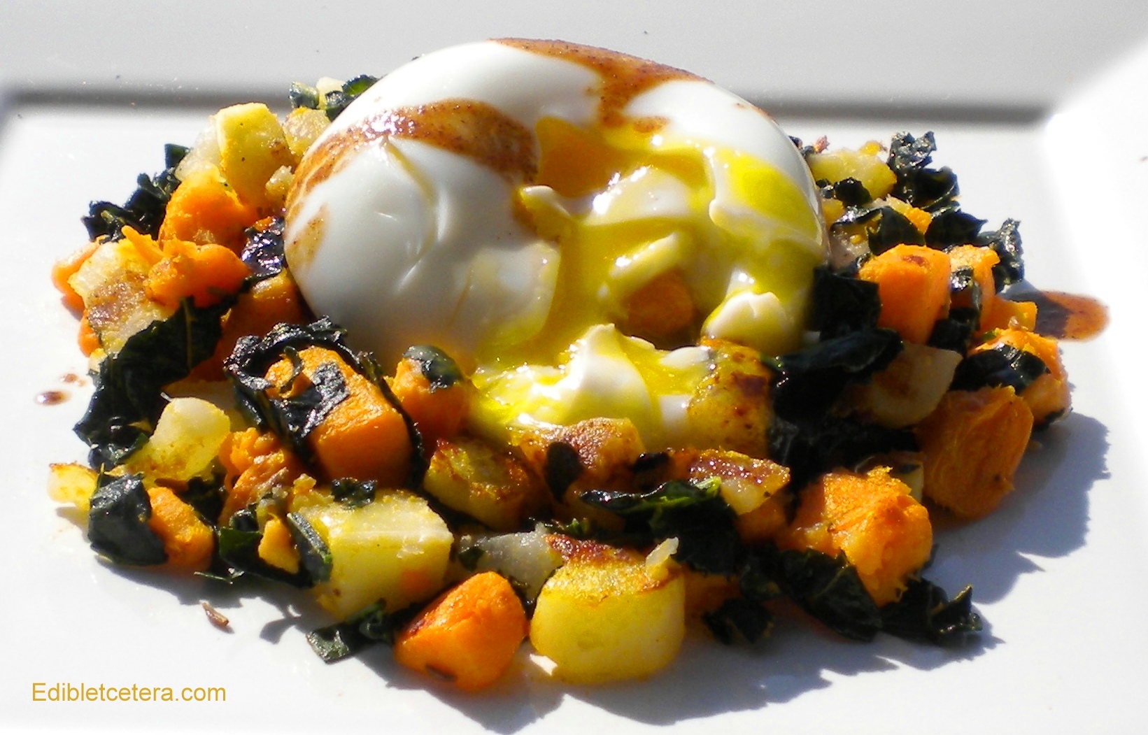 It’s perfect for an autumn/fall brunch or light supper with it’s nutritious and comforting blend of skillet-browned, diced root vegetables and Tuscan (dinosaur) kale.