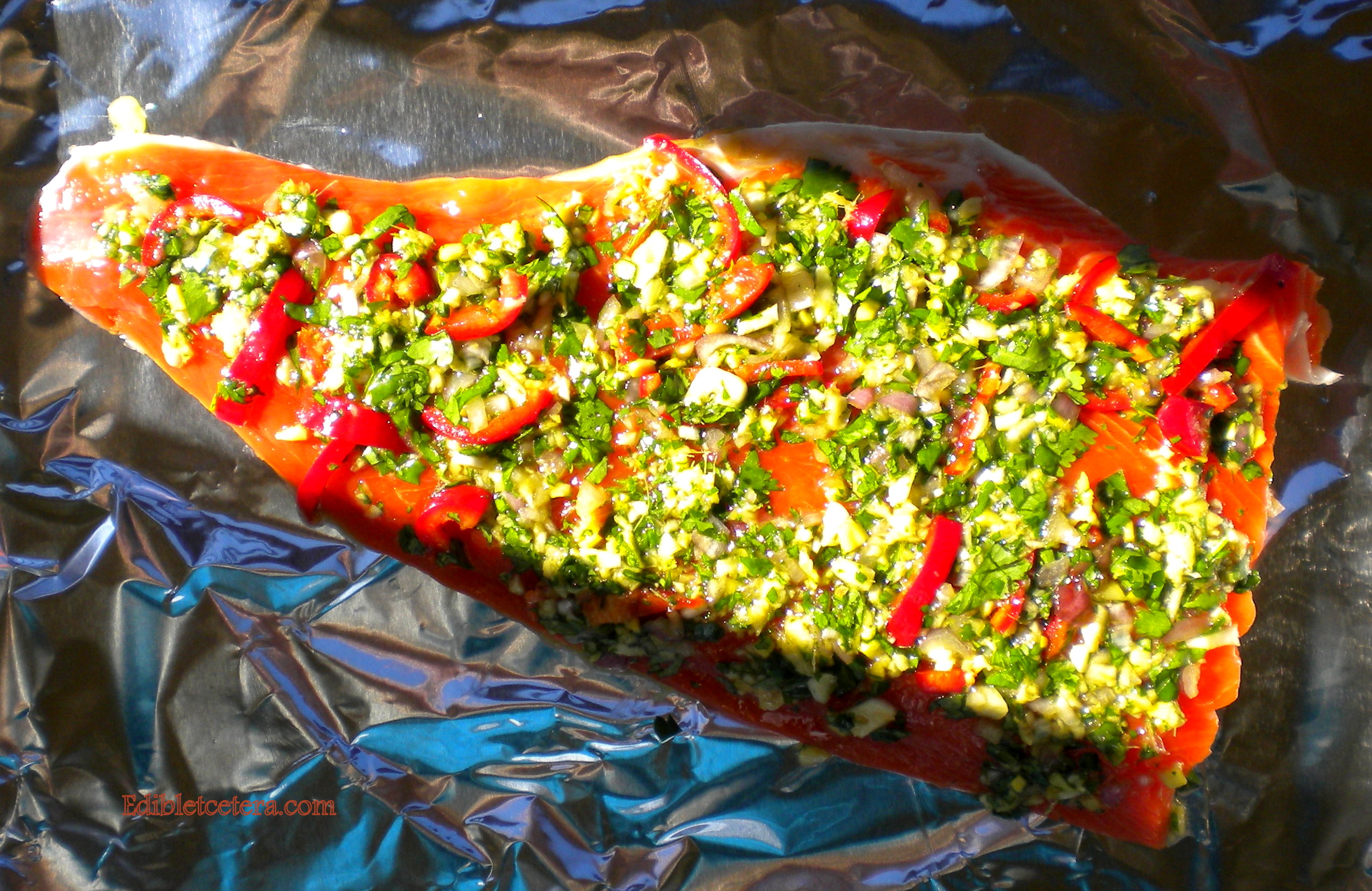 It’s very simple to prepare and positively bursting with lots of flavor. Marinate the salmon for 1-4 hours then stick it in the oven for 18-25 minutes depending on the weight.
