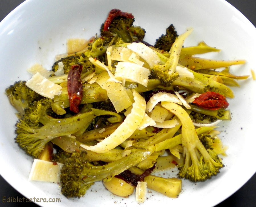 Broccoli Braised in White wine with Garlic, Chili & Sundried Tomatoes