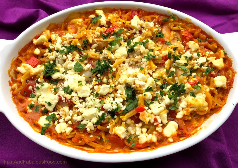 Baked Orzo with Shrimp, Saffron, Lemon & Tomatoes