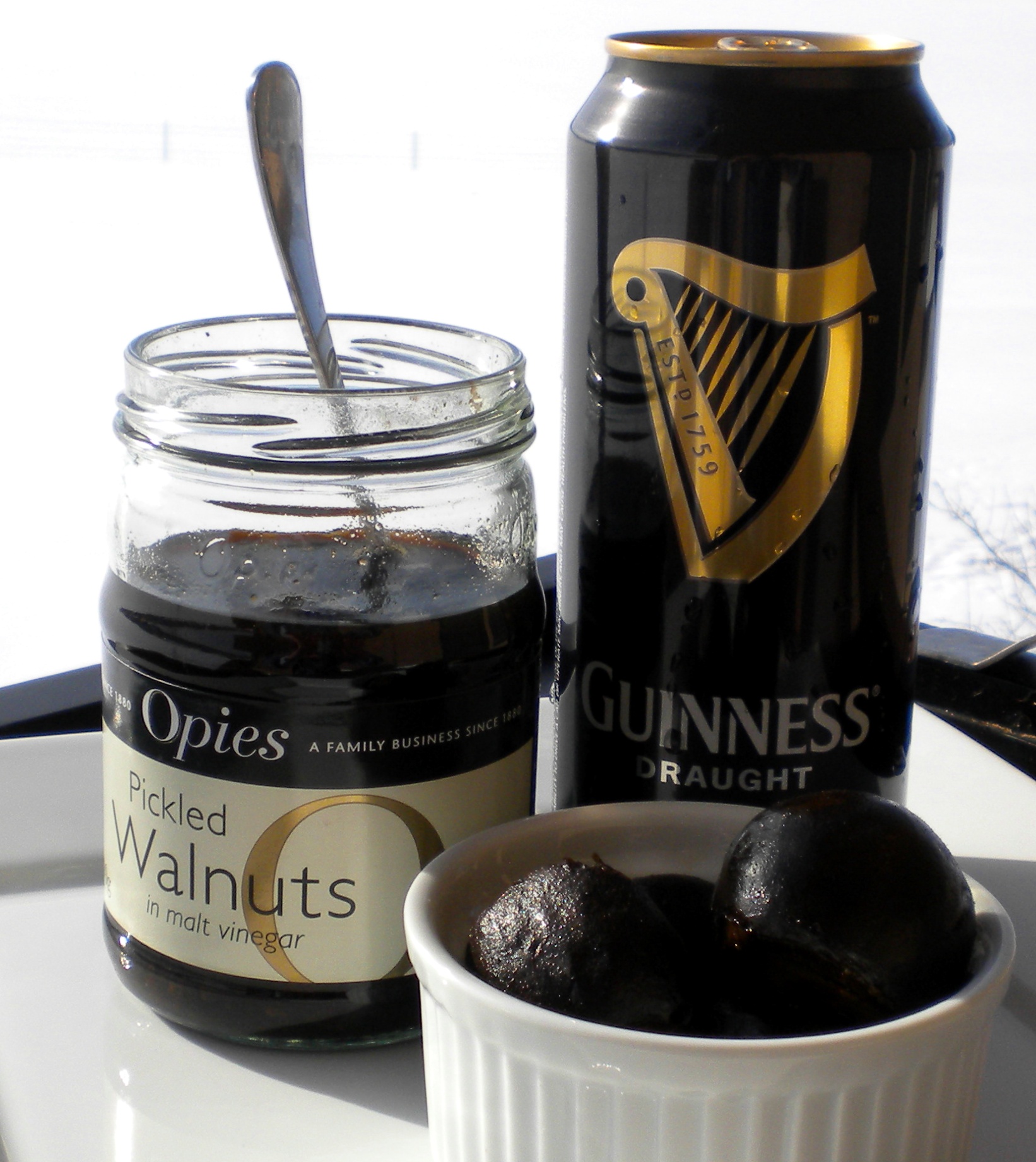 Answer: they’re a whole young walnut that’s been pickled in malt vinegar – soft green shell and all – resulting in a mysteriously dark and tender treat that’s a wonderful accompaniment to ham, cold roast beef, strong Cheddar or Stilton cheeses…and they make an unexpectedly good addition to a beef (or venison) stew.