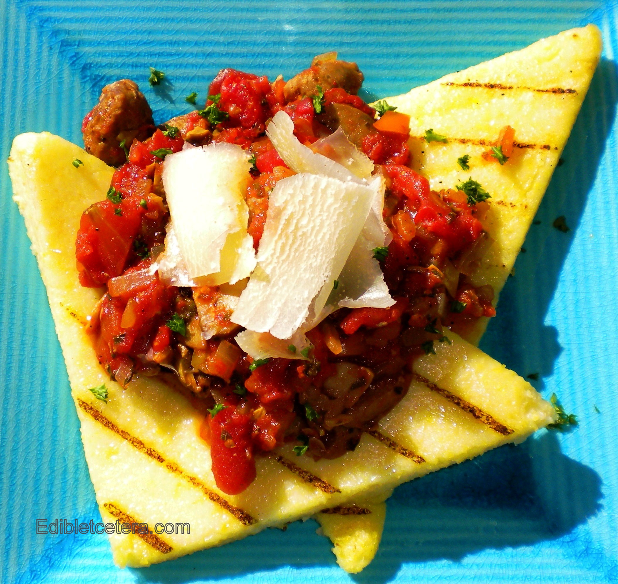 If you want to serve it over pasta, ignore the polenta recipe below and serve with freshly grated or shaved parmigiani reggiano and another scattering of chopped Italian parsley.